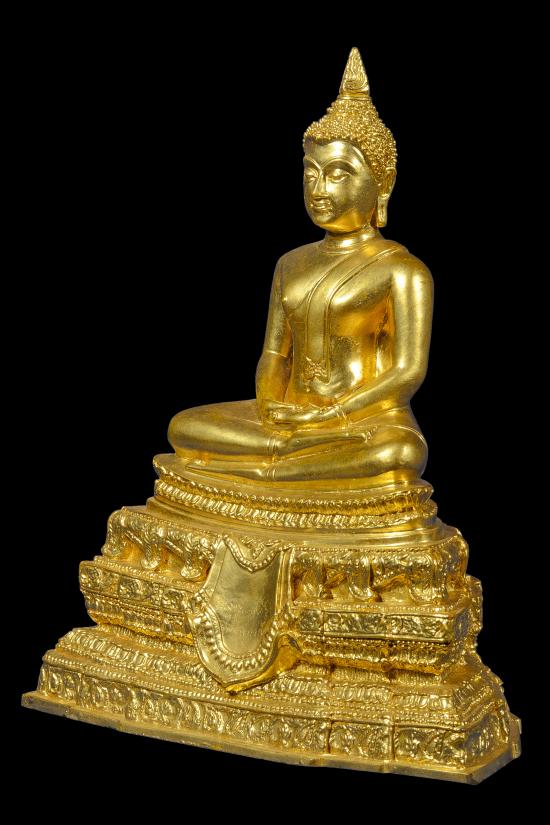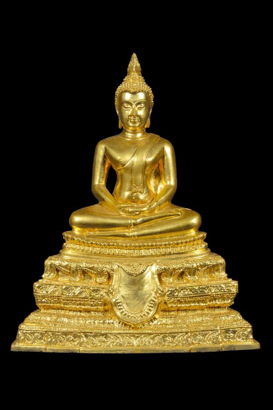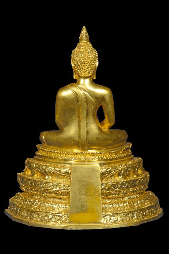 พระพุทธศิริย์ไอย์ศวรรย์ รุ่นสร้างเขื่อน เสาร์ห้า ปี 2536 พระประธานโบสถ์ หน้าตัก 5 นิ้ว วัดแก้วแจ่มฟ้าจุฬามณี ดุสิต กทม. (เนื้อทองเหลือง ปิดด้วยทองคำแท้) ลพ.เปิ่น วัดบางพระ จ.นครปฐม เจ้าพิธี+ปลุกเสก