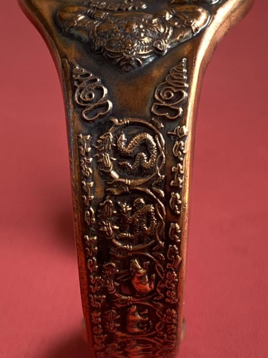 เคาะเดียวแดง กำไล องค์พ่อจตุคาม-รามเทพ รุ่นมงคลจักรวาล เนื้อสำริด เลข 916 |
