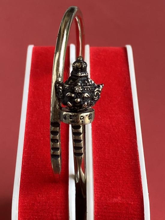 เคาะเดียวแดง หลวงปู่บุดดา กำไลท้าวเวส เนื้อ ทองขาวขัดเงารมดำ |