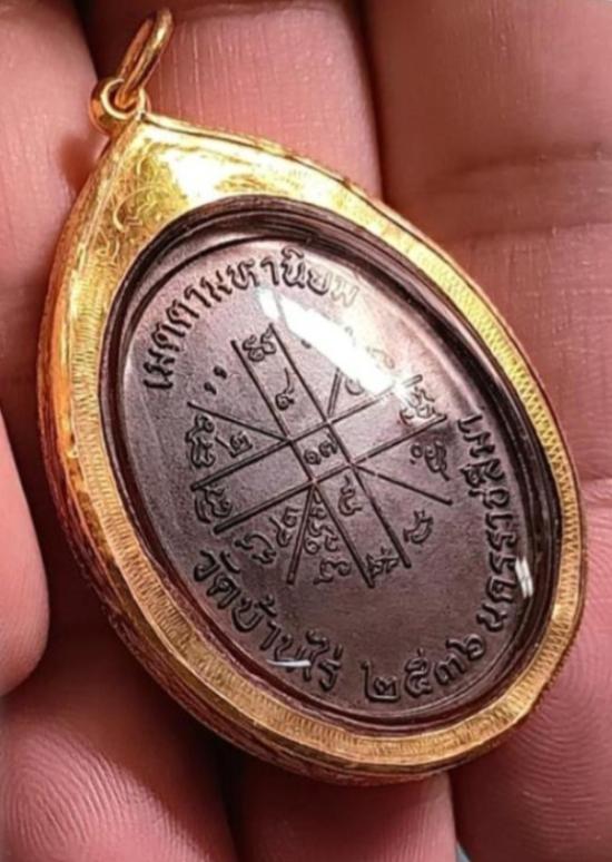 เหรียญเจริญพรบน เนื้อทองแดง ปี 2536 สวยๆ เลี่ยมทองยกซุ้มกันน้ำอย่างดี..A