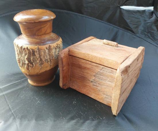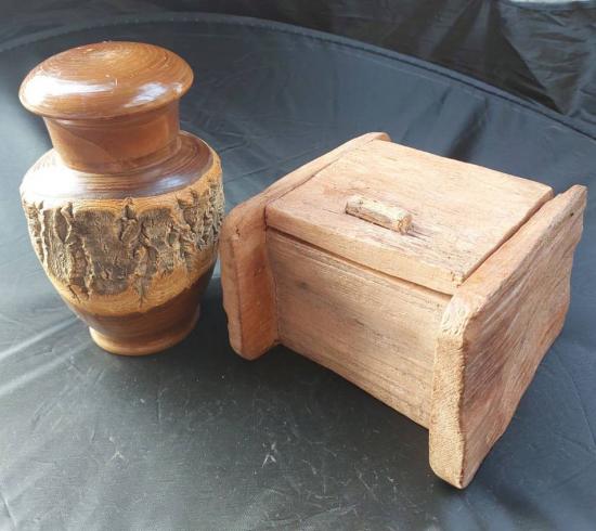 ***วัดใจ 2ใบ***กล่องไม้โบราณของญี่ปุ่นที่เรียกว่า "Chazutsu" หรือ "Kabazaiku" ซึ่งทำจากเต้นไม้เชอร์รี่ป่าทั้งต้น เก็บมวลสารดี