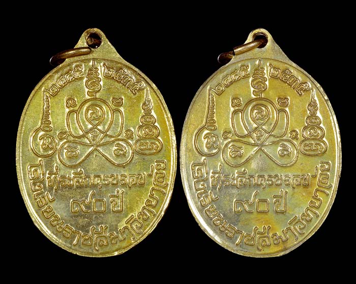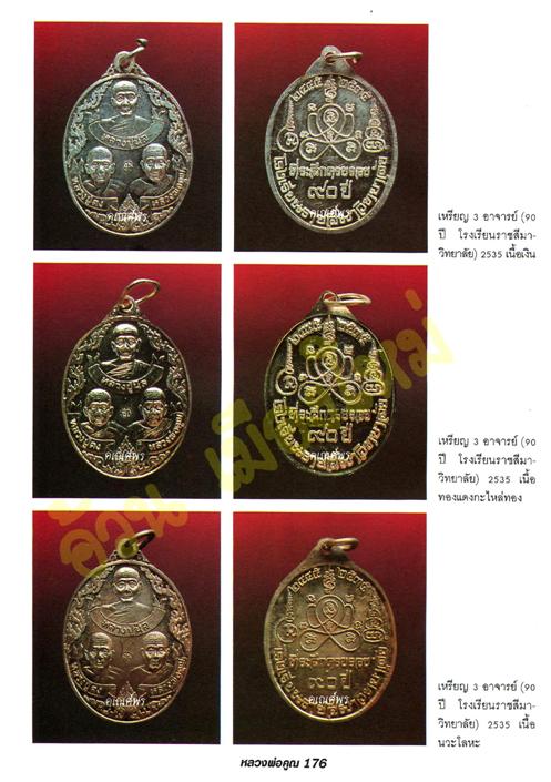 เหรียญ 3 สุดยอดคณาจารย์ ที่ระลึก 90 ปี โรงเรียนราชสีมาวิทยาลัย หลวงปู่นิล , หลวงพ่อคง , หลวงพ่อคูณ ( เนื้อทองฝาบาตร ) พ.ศ.2535 ( รับพระ 2 เหรียญ )