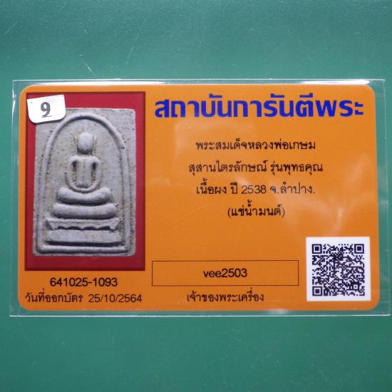 ชื่อพระเครื่อง พระสมเด็จแช่น้ำมนต์ หลวงพ่อเกษม รุ่นพุทธคุณ ฝังตะกรุดสังฆวานร ปี 2538. ..9... (68.4.11
