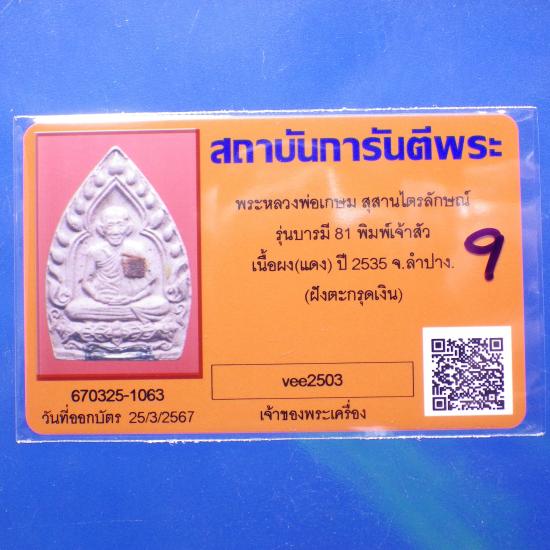 พระผงรูปเหมือน พิมพ์เจ้าสัว รุ่นบารมี 81 หลวงพ่อเกษม ฝังตะกรุดเงิน ปี2535....9.. 68.6.24 |