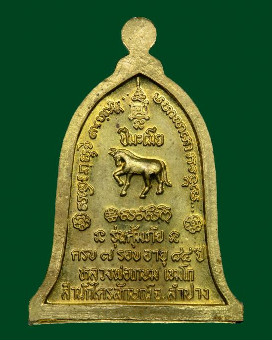 รายละเอียด เหรียญระฆัง คุ้มภัยประจำปีเกิด ((ปีมะเมีย )) ปี 2538 เนื้อทองฝาบาตร เคาะเดียวครับ