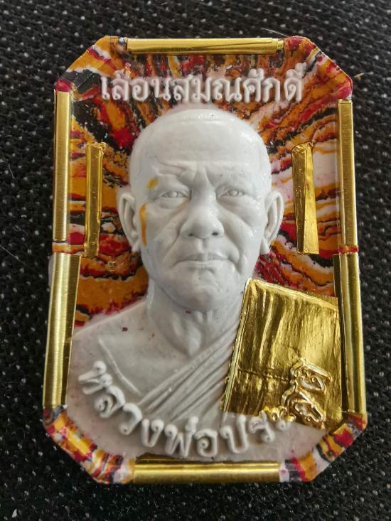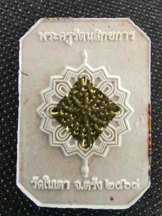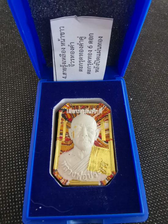 เนื้อผงสายรุ้งเหลือง หน้าขาว จีวรทองคำ ตะกรุดทองคำคู่ ตะกรุดทอง6ดอก หลังปิดแผ่นทอง เลื่อนสมณศักดิ์ หลวงพ่อประสูติ ปิยธัมโม วัดในเตา จ.ตรัง |