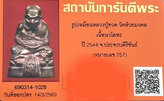 รูปเหมือนหลวงปู่ทวด วัดห้วยมงคล เนื้อนวโลหะปี 2544 จังหวัดประจวบคีรีขันธ์หมายเลข 757