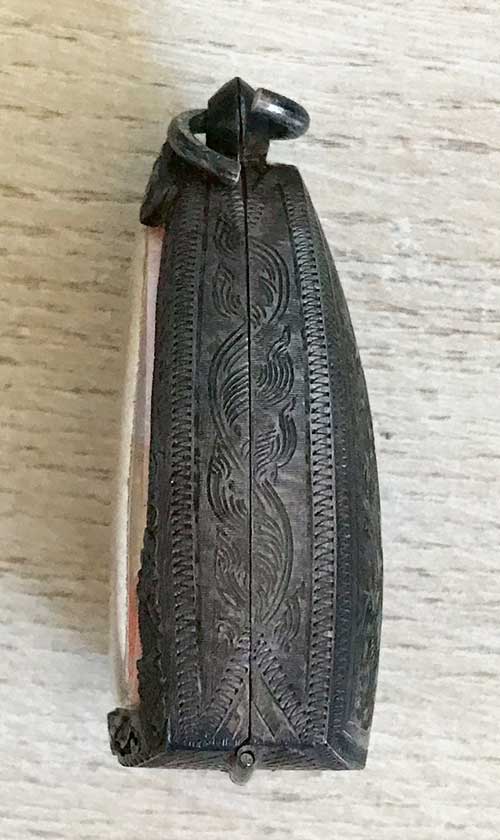 ตลับเงินงานสั่งตัด งานมือแกะลายยกซุ้มหัวสิงห์ปิดหลัง หนัก 28.66 กรัม ใส่ชินราช และพระกริ่ง