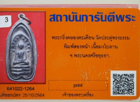 พระกริ่งคลองตะเคียน(วัดประดู่ทรงธรรม) จ.อยธยา พ.ศ.๒๔๖๐ บัตรG