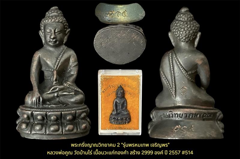 พระกริ่งญาณวิทยาคม 2 "รุ่นพรหมเทพ เจริญพร" หลวงพ่อคูณ วัดบ้านไร่ เนื้อนวะแก่ทองคำ สร้าง 2999 องค์ ปี 2557