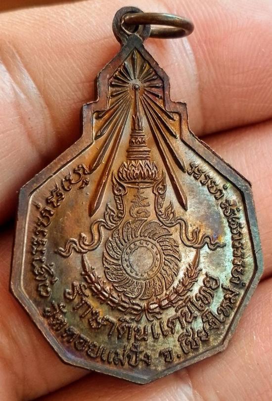 เหรียญ๙เหลี่ยมเนื้อทองแดง หลวงปู่แหวน สุจิณฺโณ วัดดอยแม่ปั๋ง จ.เชียงใหม่ ปี๒๕๒๐ รุ่น รักษาดินแดนไทย