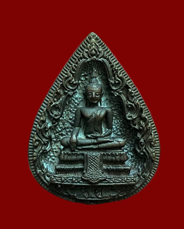 เหรียญหล่อหลวงพ่อวัดไร่ขิง จ.นครปฐม พิมพ์หยดน้ำหลังเรียบ เนื้อสำริด ปี 2520 |