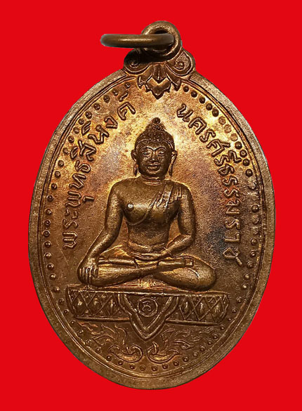 เหรียญพระพุทธสิหิงค์ วัดมหาธาตุฯ พิมพ์ใหญ่ เนื้อทองแดง ห่วงเดิม ปี2517 จ.นครศรีธรรมราช + บัตรG-pra สภาพสวยเดิมค่ะ |