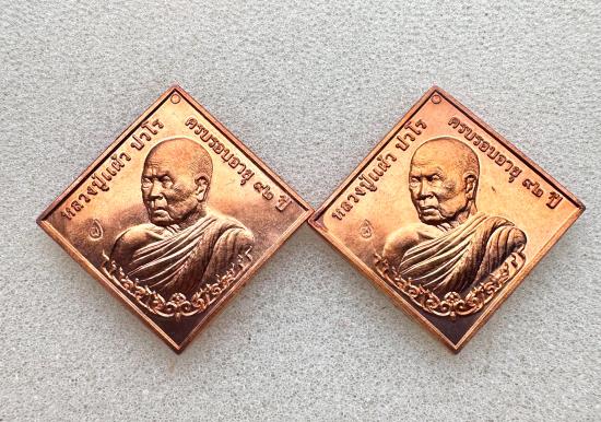 เหรียญข้าวหลามตัดหลวงปู่แผ้ว วัดรางหมัน ปี 57 ครบรอบอายุ 92 ปี เนื้อทองแดงผิวไฟ สภาพสวยตอกโค๊ตชัดเจน มีมา 2 เหรียญ |