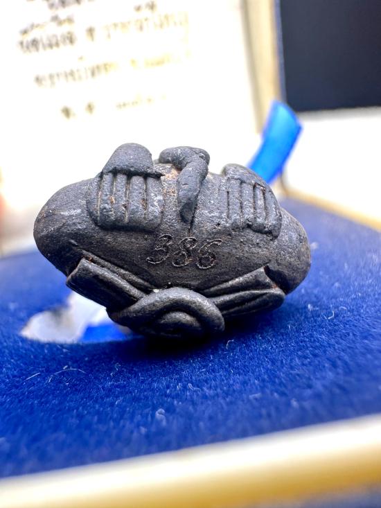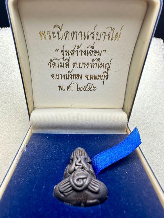 พระปิดตาแร่บางไผ่พิมพ์ย้อนยุค พิมพ์ใหญ่ โค๊ตหมายเลข 386 รุ่น สร้างเขื่อน วัดโมลี จ.นนทบุรี ปี2546 กล่องเดิมวัด |