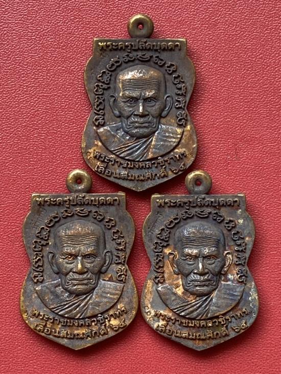 เคาะเดียวแดง เหรียญหล่อ หลวงปู่ทวดหลังหลวงปู่บุดดารุ่น เลื่อนสมณศักดิ์(3องค์) เนื้อ ชนวนนำฤกษ์
