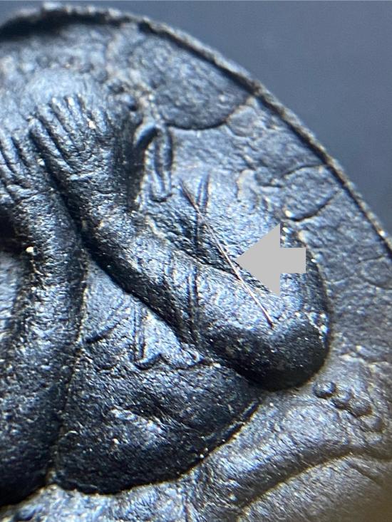 พระปิดตายันต์ดวงเล็ก ปี2523 สมเด็จพระญาณสังวร (เจริญ) วัดบวรนิเวศ_(เนื้อผงใบลานดำปลดหนี้)_มีเส้นเกศา_ |