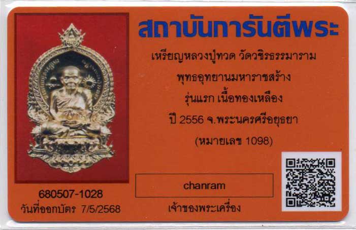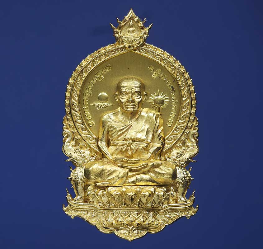 หลวงพ่อทวด พิมพ์เสมานั่งพาน รุ่น๑ พุทธอุทยานมหาราช เนื้อทองเหลือง หมายเลข*๑๐๙๘