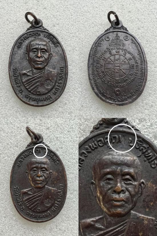 เหรียญหลวงพ่อคูณ ปริสุทโธ วัดตลาดไทรเก่า นครราชสีมา เนื้อทองแดงรมดำ ปี ๒๕๒๒ บล๊อคไม่มีเม็ดตา(นิยม) ณ บุ๋ม