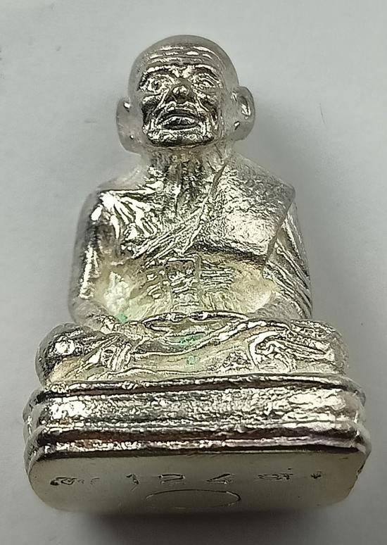 พระหล่อหลวงปู่ทวด พิมพ์เลขใต้ฐานโบราณย้อนยุค "รุ่น101ปีอาจารย์ทิม" พิธีศาลหลักเมือง ปี56 เนื้อเงิน เบอร์ 124 พร้อมกล่องเดิมครับ (พระหนัก 26.93 กรัม)