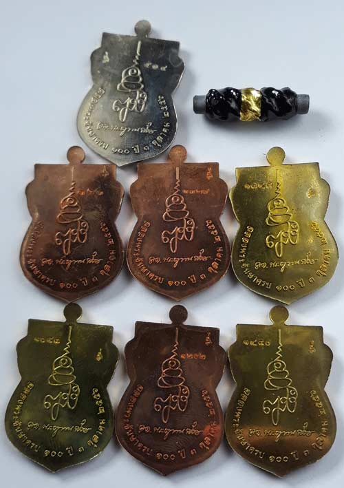 เหรียญเสมาหน้าเลื่อน หลวงปู่ทวด ญสส 100 ปี วัดบวรนิเวศฯ ชุดกรรมการใหญ่ (เหรียญ7 องค์+ ตะกรุดระงับภัย 1 ดอก ) พร้อมกล่องเดิมครับ (V-1)