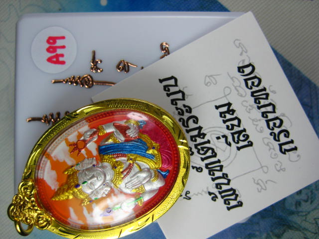 เหรียญพระพรหม รุ่นพรหมประทานพร เนื้อเพ้นท์เต็มระบบเลียมกรอบทอง หมายเลขตอง ๓๓๓ หลวงพี่เลี้ยง วัดจอมเกษ จ.พระนครศรีอยุธยา (---A99---) |