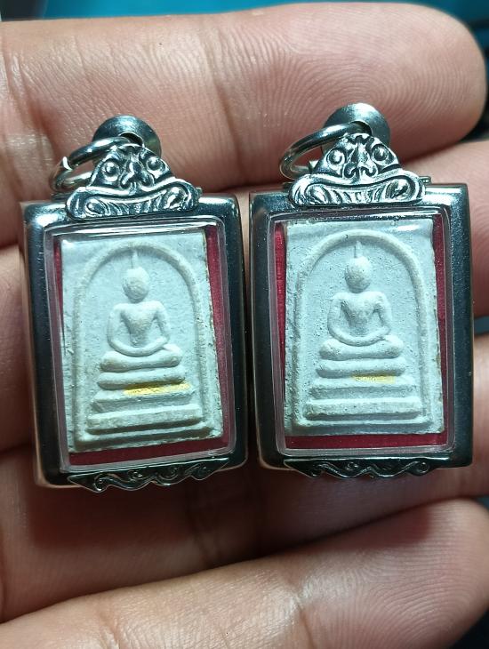 พระสมเด็จพิมพ์คะแนน หลวงพ่อแพ วัดพิกุลทอง สิงห์บุรี ฝังตะกรุดทองคำ ใส่กรอบสแตนเลส รวม 2 องค์ สวยครับ
