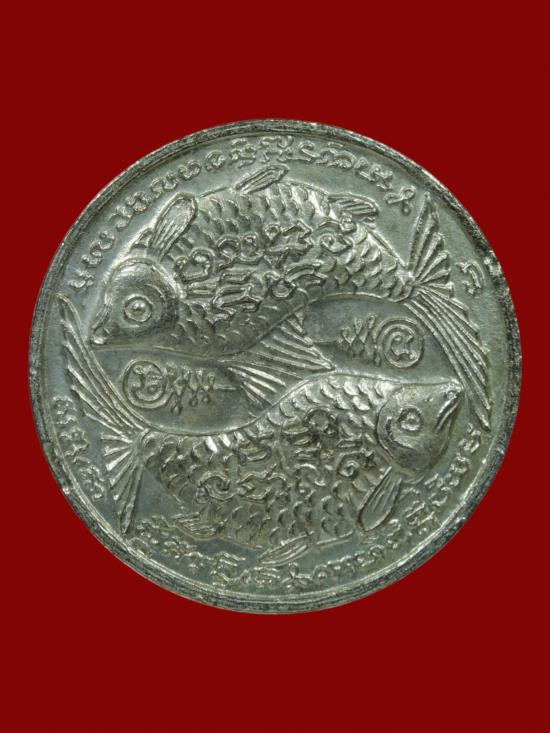 เหรียญปลาตะเพียน หลวงพ่อทองดำ ปี 2522 เนื้อทองแดงชุบนิเกิ้ล วัดถ้ำตะเพียนทอง จ.ลพบุรี