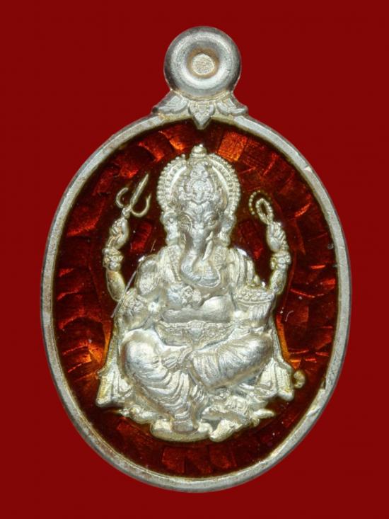 เหรียญพระพิฆเนศ รุ่นพรประกาศิต เนื้อเงินลงยา วัดบัวขวัญ จ.นนทบุรี