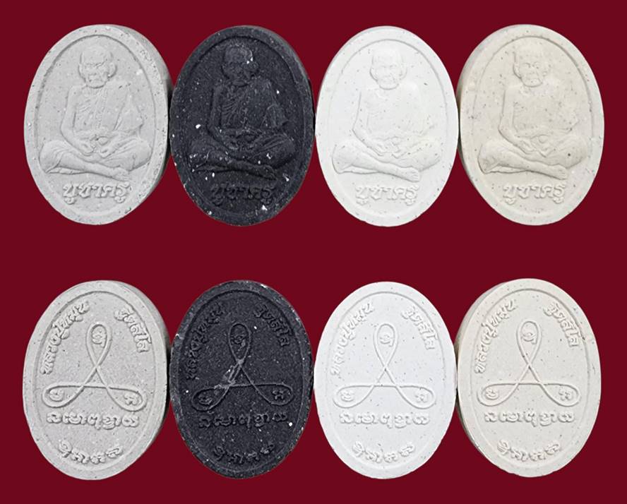 พระผงบูชาครู รุ่น รวยทันใจ หลวงปู่หมุน ฐิตสีโล อธิฐานจิตเดี่ยวโดย หลวงปู่ทองคำ สุวโจ สภาพสวย 4 องค์ 4 เนื้อ ครับ |