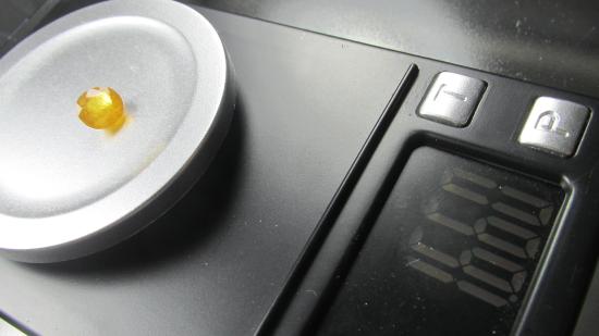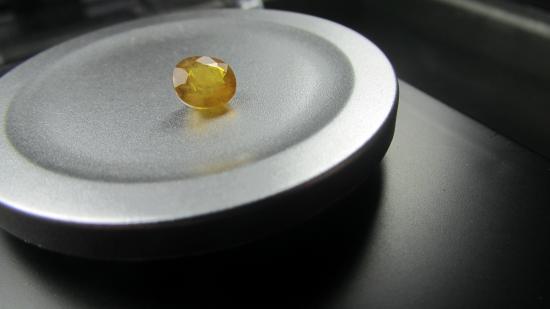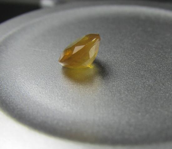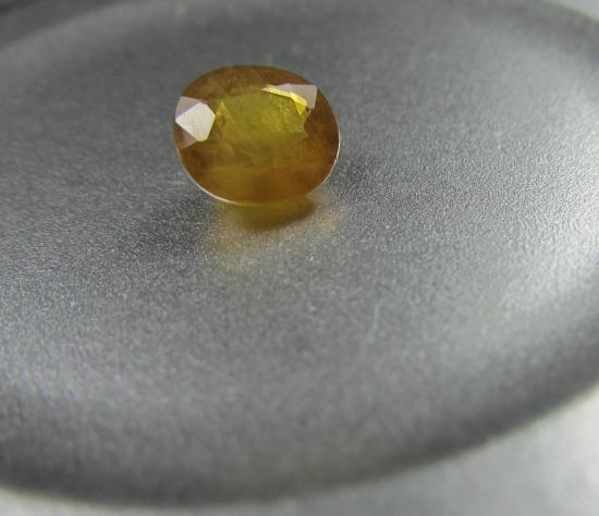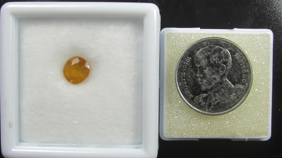 บุษราคัม (Yellow Sapphire) นำหนัก 1.6 กะรัต สีสวย มีมลทินในเนื้อพลอยตามลักษณะของพลอยแท้ |
