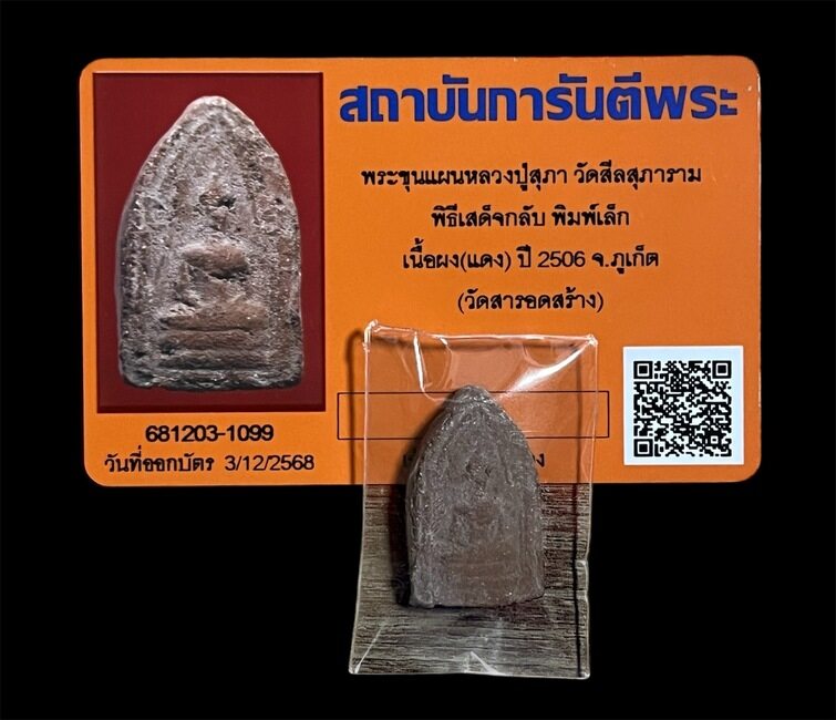 มาเริ่มที่ราคาเบาๆกัน(1,250) ส่วนที่เหลือแล้วแต่ท่านครับ พระขุนแผนหลวงปู่สุภา วัดสีลสุภาราม พิธีเสด็จกลับ พิมพ์เล็ก เนื้อผง(แดง) ปี 2506 จ.ภูเก็ต (วัดสารอดสร้าง) พร้อมบัตรรับรองจากสถาบันการันตีพระ(แค่ค่าออกบัตรก็ 500 บาทแล้ว)