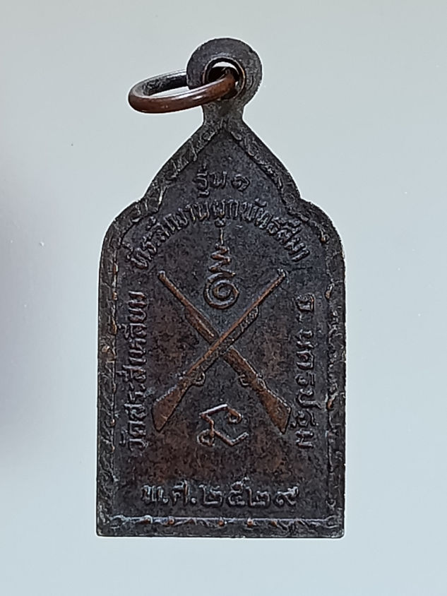 เหรียญปืนไขว้ รุ่น๑ หลวงพ่อแดง วัดสระสี่เหลี่ยม อ.ดอนตูม จ.นครปฐม ปี 2529 |