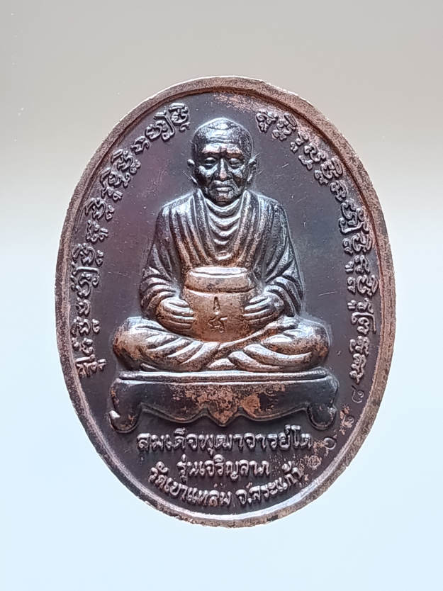 เหรียญเจริญลาภ หลวงปู่กาหลง เขี้ยวแก้ว วัดเขาแหลม จ.สระแก้ว อายุครบ 90 ปี เนื้อนวโลหะ ปี 2550