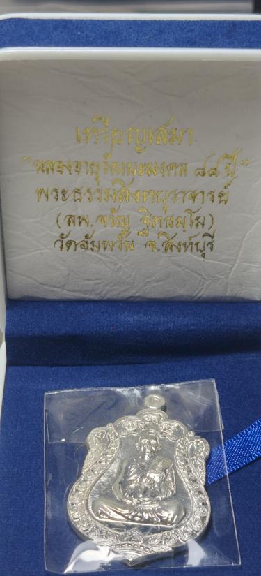 เหรียญเสมาหลวงพ่อจรัญ วัดอัมพวัน รุ่น ฉลองอายุวัฒนมงคล ๘๔ ปี เนื้อเงิน พร้อมกล่องเดิม หมายเลข จ๓๔๗๗ |