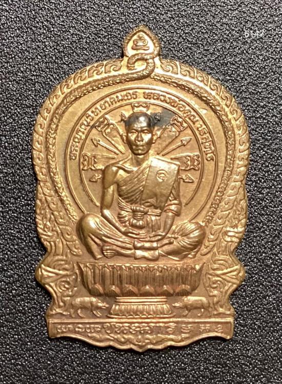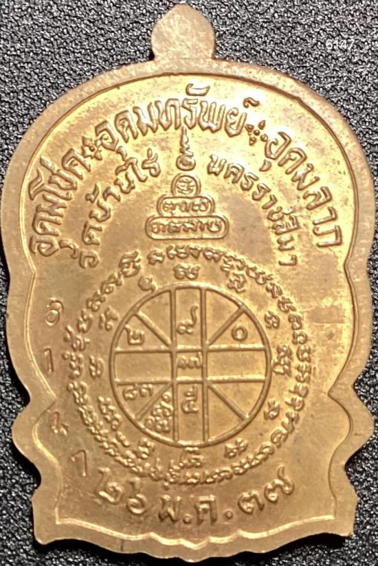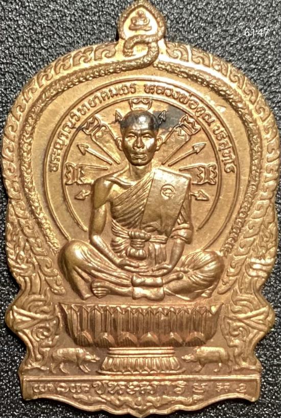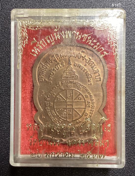 เหรียญหลวงพ่อคูณ วัดบ้านไร่ รุ่นนั่งพานชนะมาร ปี 2537 เนื้อทองแดง หมายเลข 6147 พร้อมกล่อง+บัตรรับรอง