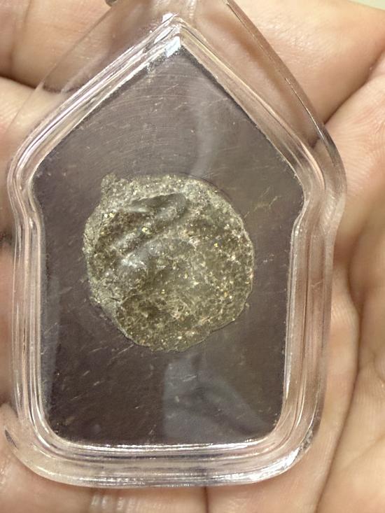 ด้านหลังบรรจุผงพรายกุมารผสมน้ำมันพญาเสือโครงและเศษกรามช้างน้ำของหลวงปู่ทิม