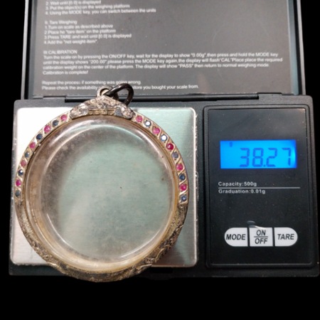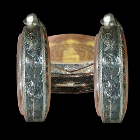 ตลับเงินแท้เก่า ฝั่งพลอย งานขึ้นมือยกซุ้มแกะลาย อย่างหนา ขนาดขอบกระจก 5.5 ซม. หนา 1 ซม.สภาพสวยสมบูรณ์ |