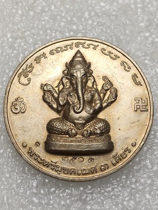 เคาะเดียวแดง.....เหรียญพระพิศเนศร์ 3 เศียร (ตรีมุขคเณศ) พ่อท่านไข่ วัดลำนาว ปี 2547 ขนาดเหรียญ 3 ช.ม. เนื้ออัลปาก้า
