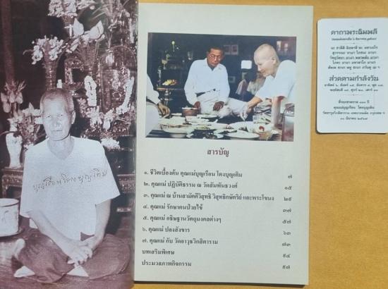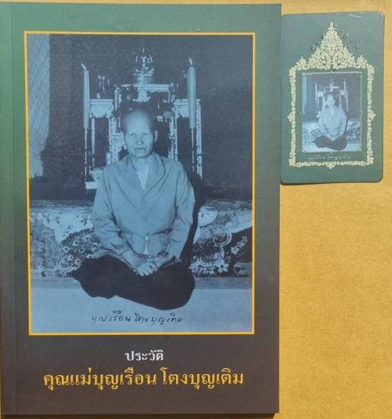 หนังสือ ประวัติ คุณแม่บุญเรือน โตงบุญเติม (หนังสือ มือ 1) กระดาษอาร์ตมันสีอย่างดีทั้งเล่ม หนากว่า 100 หน้า พร้อม รูปถ่ายปั้มนูน คุณแม่บุญเรือน โตงบุญเติม ที่รฤกชาตกาล 130 ปี วัดอาวุธจัดสร้าง |