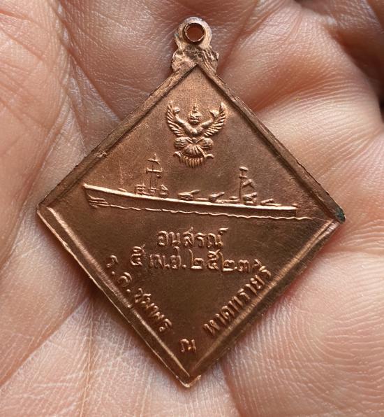 เหรียญพลเรือเอกพระเจ้าบรมวงศ์เธอกรมหลวงชุมพร เขตอุดมศักดิ์ หลังเรือรบ องค์พระบิดาแห่งกองทัพเรือ "รุ่น อนุสรณ์ ร.ล. ชุมพร" รุ่นนี้ กองทัพเรือร่วมกับจังหวัดชุมพรสร้างถวาย ในวันที่ ๕ เมษายน ๒๕๒๓ เป็นเหรียญรูปข้าวหลามตัด เนื้อโลหะทองแดง ผสมชนวนมวลสารมากมาย ส่วนเหรียญนี้ เขต ไม่มี ร (นิยม) หายากสภาพสุดคลาสสิค ละคราฟ ***ในช่วงปี พ.ศ.2518 นาวาเอก จำลอง ประเสริฐยิ่ง ผู้ว่าราชการจังหวัดชุมพร ได้ทราบว่ากองทัพเรือพิจารณาปลดระวางประจำการเรือหลวงชุมพร จึงได้หารือกับกลุ่มอดีตทหารเรือ สมควรขอเรือหลวงชุมพรตั้งไว้เป็นอนุสรณ์ที่หาดทรายรี และ ได้ทำหนังสือแจ้งกองทัพเรือ เมื่อวันที่ 3 กันยายน พ.ศ.2519 และมีการประสานงานต่อเนื้องจนเป็นผลสำเร็จเรียบร้อยในปลายปีพ.ศ. 2520 สมัยนายบุญนาค สายสว่าง เป็นผู้ว่าราชการจังหวัดชุมพร เมื่อนำเรือหลวงชุมพรเข้าที่ตั้งฐานรองรับ ณ หาดทรายรีข้างพระตำหนักศาลเสด็จในกรมหลวงชุมพรฯ ได้มีพิธีต้อนรับ และ ฉลองเรือหลวงชุมพร เมื่อวันศุกร์ที่ 11 กรกฏาคม 2523 ดังนั้น เนื่องในโอกาส ที่ได้นำเรือรบหลวง ชุมพร ที่ได้ปลดระวางแล้ว ขึ้นประดิษฐานไว้เป็นอนุสรณ์ ที่หน้าศาลเสด็จในกรมหลวงชุมพร ณ หาดทรายรี อำเภอเมืองชุมพร จังหวัดชุมพร กองทัพเรือร่วมกับจังหวัดชุมพรจึงจัดสร้างเหรียญ "รุ่น อนุสรณ์ ร.ล. ชุมพร" ถวาย เมื่อวันที่ ๕ เมษายน ๒๕๒๓ ตรงกับแรม ๕ ค่ำ เป็นวันเสาร์ ๕ ที่โบราณจารย์ ถือว่าเป็นวันอันศักดิ์สิทธิ์ สำหรับการประกอบพิธีพุทธาภิเษก วัตถุมงคลต่างๆ เพราะนานปี จึงจะมีขึ้นสักหน เมื่อได้จัดสรา้งแล้ว ทางกองทัพเรือได้นำเหรีญยดังกล่าวนี้ ไปขอรับความเมตตา จากหลวงปู่แหวน สุจิณโณ วัดดอยแม่ปั๋ง ได้แผ่เมตตาจิต และได้ประกอบพิธีปลุกเสกเป็นงานใหญ่ขึ้นที่จังหวุดชุมพร โดยมี หลวงพ่อสงฆ์ วัดเจ้าฟ้าศาลาลอย เมตตาร่วมปลุกเสก เหรียญรุ่นนี้ จึงจัดเป็นมงคลวัตถุ ที่พลานุภาพแห่งความศักสิทธิิ์ สมบูรณ์เป็นที่สุด ด้วยวัตถุประสงค์การจัดสร้าง และกรรมวิธีการจัดสร้าง ขึ้นนั้น บริสุทธิ์ เพื่อถวายพระเกียรติ แด่ องค์พระบิดาแห่งกองทัพเรือ โดยเฉพาะ นั้นเอง