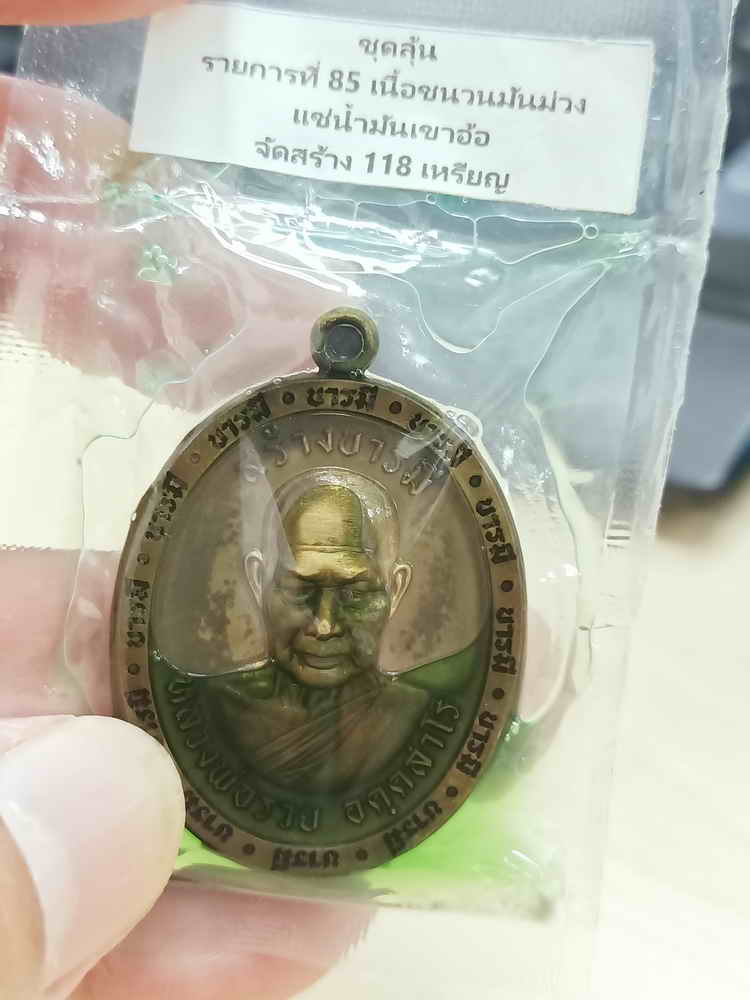 วัดใจ 100 เหรียญสร้างบารมี หลวงพ่อรวย วัดมาบตาพุด จ.ระยอง ปี 2566 ชนวนมันม่วง แช่น้ำมันเขาอ้อ หมายเลข 95 กล่องเดิม |