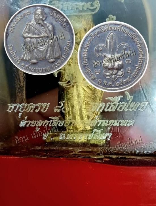 พระบูชาตั้งหน้ารถ รุ่น อายุครบ 80 ปี ลูกเสือไทย ค่ายลูกเสืออำเภอด่านขุนทด ปี 2534 ( ฝาพลาสติกด้านหน้าไม่มี )