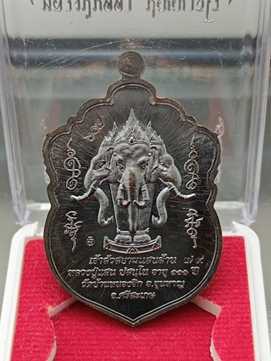 @@ เหรียญเสมา ช้างสามเศียรเอราวัณ รุ่น เจ้าสัวสยามแสนล้าน ปี 2560 หลวงปู่แสน ปสนฺโน วัดบ้านหนองจิก อ.ขุนหาญ จ.ศรีสะเกษ เนื้อทองแดงรมดำลงยา หน้ากากเงินเต็มแผ่น หมายเลข 79 พร้อมกล่องครับ