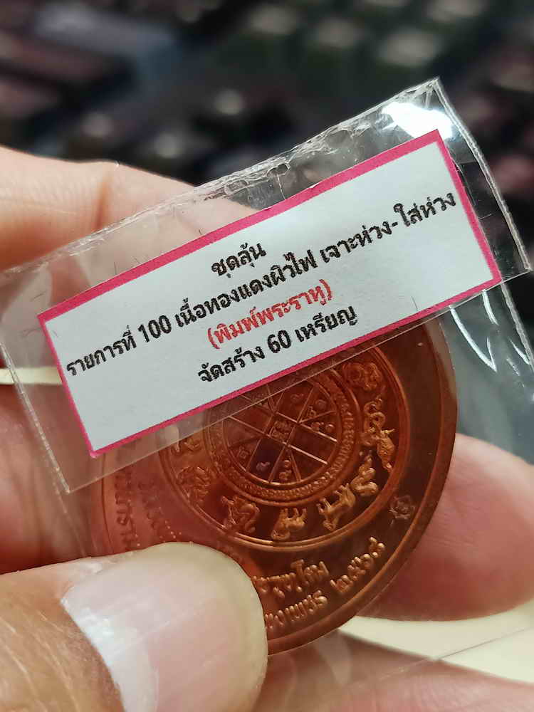 วัดใจ 100 เหรียญพระราหูทรงครุฑ ดวงเศรษฐี หลวงพ่อโชคชัย วัดเชตวนาราม(น้ำดิบ) จ.กำแพงเพชร 2568 ทองแดงผิวไฟ เจาะห่วง หมายเลข 21 สร้าง 60 กล่องเดิม |