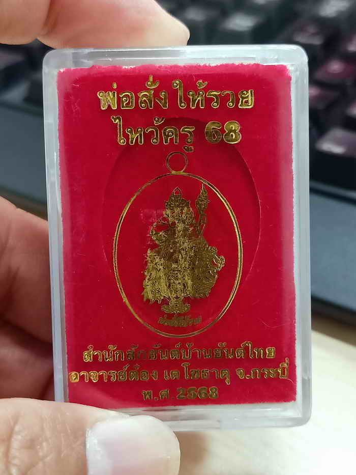 วัดใจ 100 เหรียญพ่อสั่งให้รวย ไหว้ครู 68 สำนักสักยันต์บ้านยันต์ไทย อาจารย์ต๋อง เตโชธาตุ จ.กระบี่ 2568 ทองแดงผิวดิบ หมายเลข 64 กล่องเดิม |