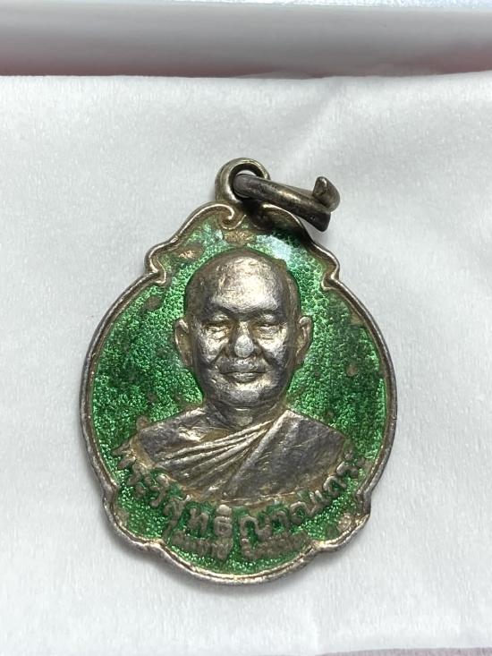 เคาะเดียวแดง เหรียญพัดยศ เนื้อเงิน ลงยาเขียว หลวงพ่อสมชาย วัดเขาสุกิม
