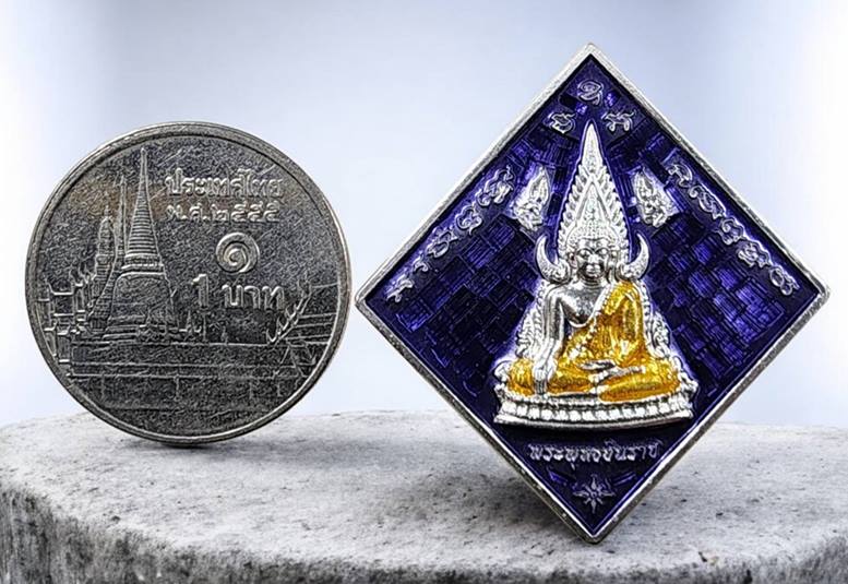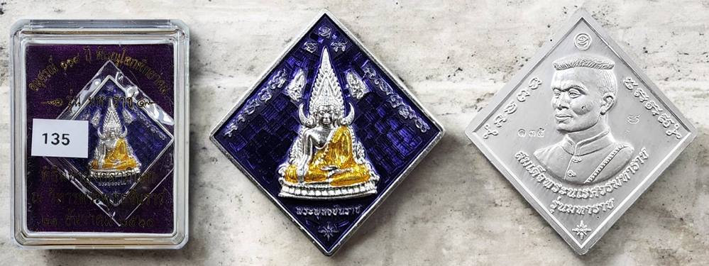 (เนื้อเงินลงยาสีม่วง) เหรียญสี่เหลี่ยมข้าวหลามตัด พระพุทธชินราชหลังพระนเรศวร รุ่นมหาราช 118 ปีเนื้อเงินลงยา(สีน้ำม่วง) หมายเลข 135 สภาพสวยมากๆ พร้อมกล่องครับ