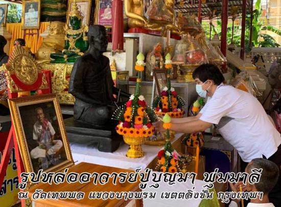 บรรจุอัฐิธาตุ อาจารย์ปู่บุญมา พุ่มมาลีไว้ภายในรูปเหมือน พร้อมกับเคลื่อนย้ายไปตั้งไว้หน้าวิหารหลวงพ่อใหญ่ เพื่อให้บรรดาศิษยานุศิษย์และผู้ที่มีจิตศรัทธา ได้สักการะบูชา
