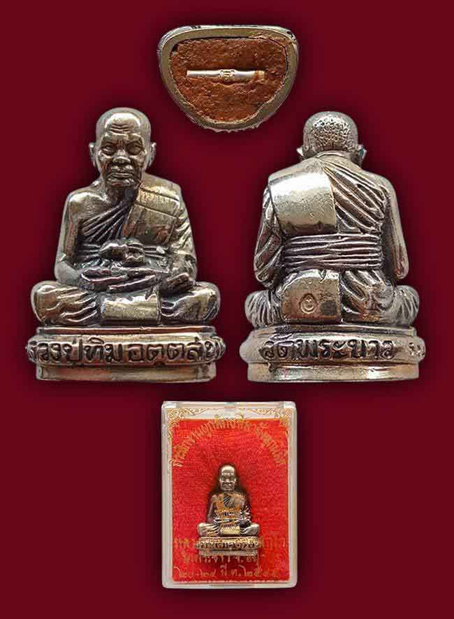 รูปหล่อเนื้ออัลปาก้า ใต้ฐานอุดผงชานหมากตะกรุดเงิน หลวงปู่ทิม วัดพระขาว อยุธยา ปี 2545